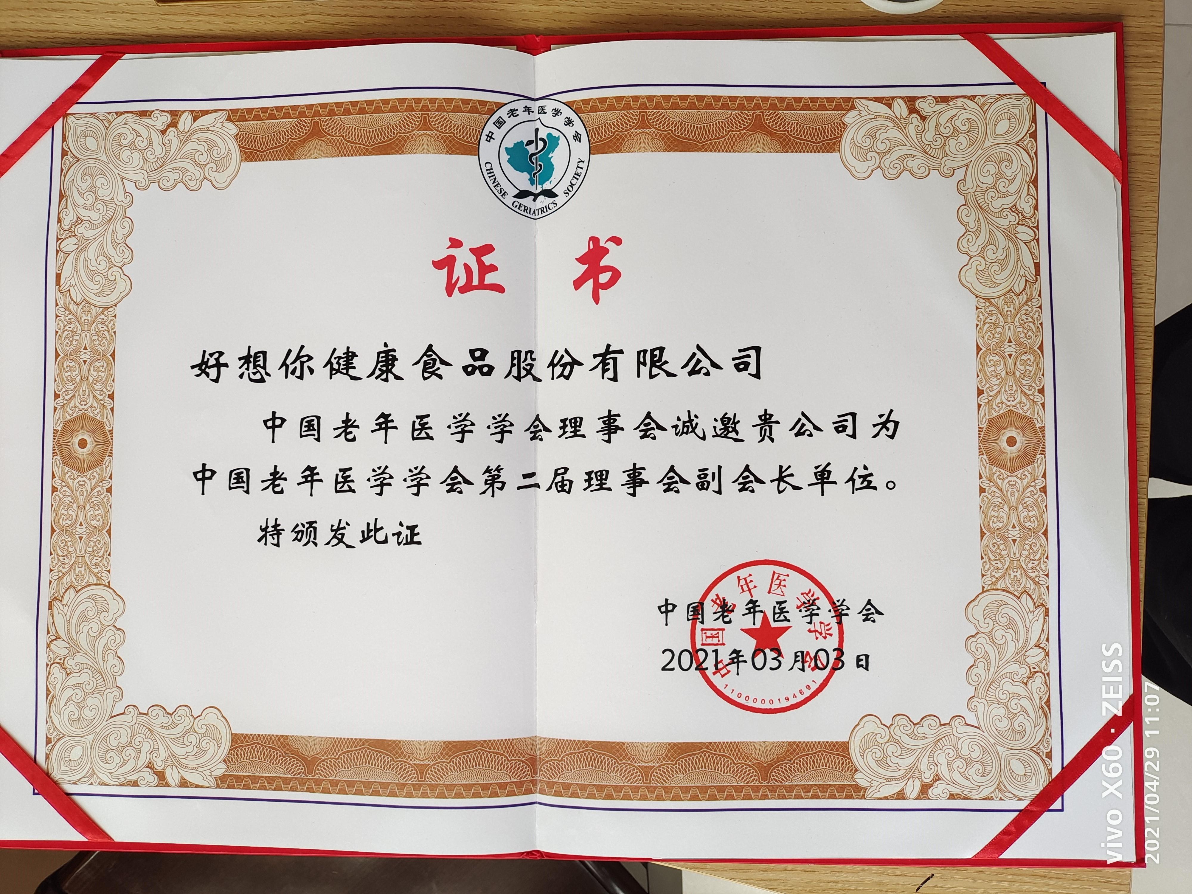 中國老年醫學學會第二屆理事會副會長單位