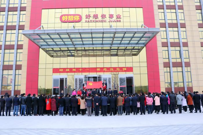 當(dāng)天早晨,在凜冽的寒風(fēng)中,總部全體行管人員集聚行政中心前,在這個莊嚴(yán)的時(shí)刻凝心聚力。連鎖門店事業(yè)部總經(jīng)理兼營銷系統(tǒng)負(fù)責(zé)人司胤衡主持儀式,由董事長石聚彬親手為優(yōu)秀黨員代表石強(qiáng)、豆妍妍、王光群等佩戴黨徽,號召各位好想你人積極投入到雙十一這一重大的節(jié)日中,貢獻(xiàn)自己的力量。