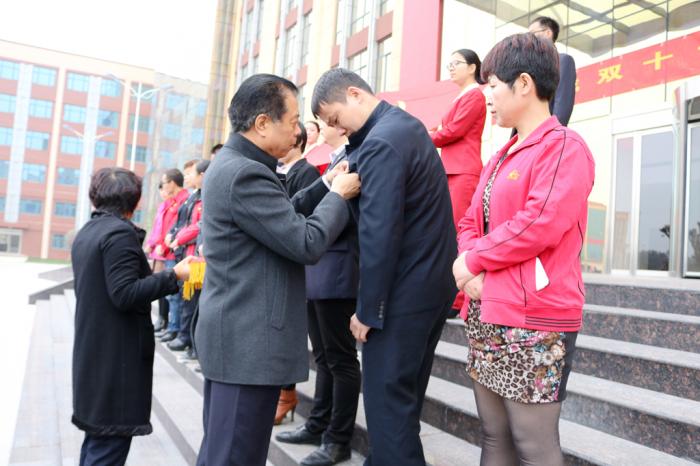 董事長為優(yōu)秀黨員代表佩戴黨徽。