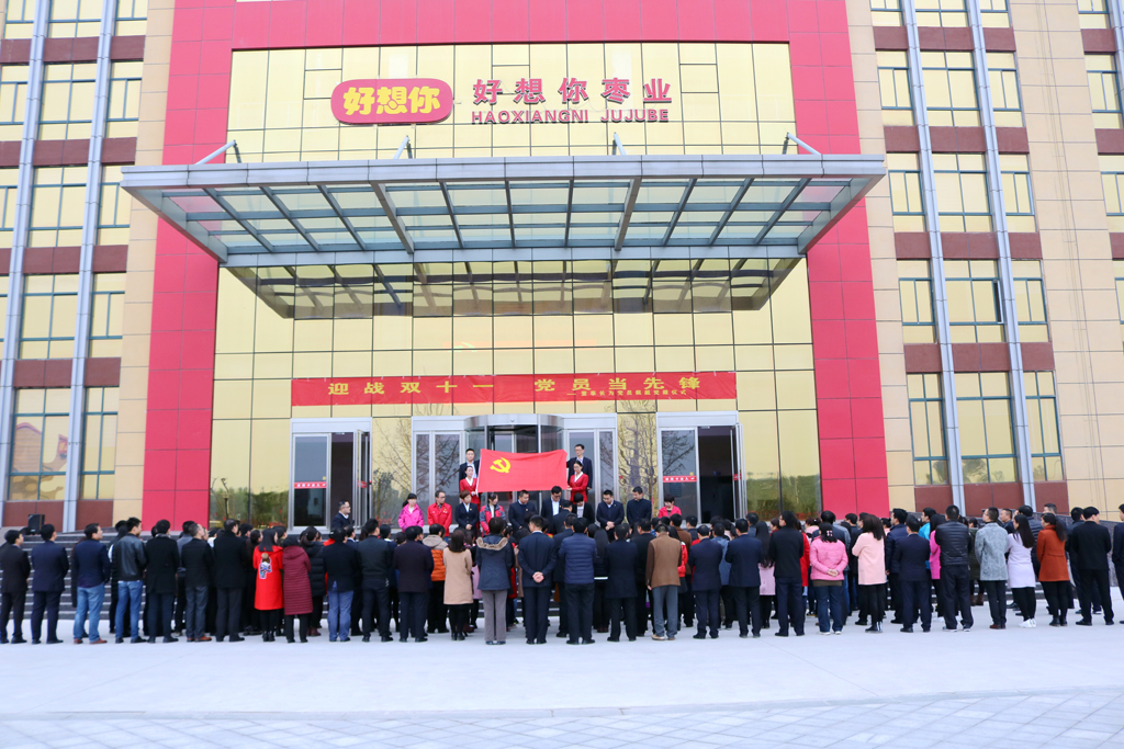 一年一度的雙十一購物狂歡節(jié)臨近,對于大力發(fā)展電子商務(wù)的好想你棗業(yè)來說將迎來一場重要的攻堅(jiān)戰(zhàn)。為了激勵全體好想你人全力迎戰(zhàn)雙十一,發(fā)揮黨員同志的模范帶頭作用。11月1日,好想你棗業(yè)總部舉行“迎戰(zhàn)雙十一 黨員當(dāng)先鋒”黨徽授戴儀式。