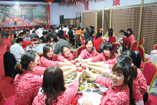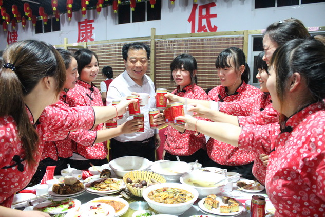 當晚的宴會上,示范園的廚師們為大家準備了豐盛的農家菜肴,一盤盤美味的月餅、清蒸花生和山藥段、清炒紅薯桿、燉雞湯、紅燒肉、紅燒魚等,散發著誘人的香氣。觥籌交錯間,各桌位還選出歌手,為大家登臺獻藝,《相信自己》、《幸福萬年長》、《相親相愛一家人》等一首首動聽的歌曲,唱出了員工們的心聲。