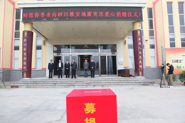 4月20日上午8時2分,四川省雅安市蘆山縣境內發生里氏7.0級地震后,好想你棗業董事長兼總經理石聚彬立即召開電話緊急會議,研究如何為災區作貢獻,并要求加緊生產救災產品。