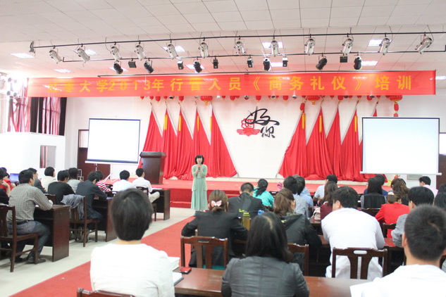企業員工的著裝要求有哪些?應掌握哪些良好的交往藝術?在商務活動中,與外國人進餐有什么注意事項?5月28日,中國紅棗大學2013年好想你行管人員商務禮儀培訓,在公司中華棗文化博物館三樓會議室舉行。