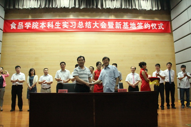 2013年6月18日上午,好想你棗業股份有限公司研發部王新才經理與中國農業大學食品科學與營養工程學院院長羅云波簽訂合作協議,好想你棗業成為中國農業大學食品學院的本科生實習基地。副校長傅澤田出席會議并講話,教務處處長林萬龍為企業授牌。