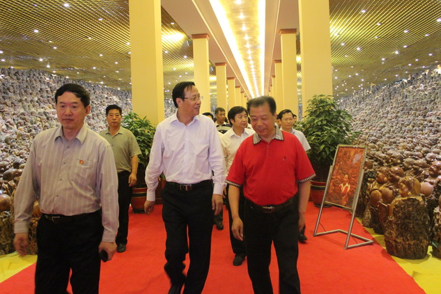 在萬佛苑內,張委員長一行被近萬尊棗木佛像的恢弘氣勢震撼到了。尊尊佛像慈顏善目,憨態可掬,形態各異,惟妙惟肖,悠然自得,笑迎眾生,瞬間將眾人帶入佛緣凈土,回歸本真。隨行人員向領導介紹說,這些彌勒佛都是由枯死的大肚子棗樹雕刻而成,也賦予了棗樹第二次生命。董事長說道,好想你堅持以“良心工程、道德產業、倡導科學膳食、引領健康理念”為企業準則,就是要用佛家的智慧和道德觀念來指導和規范自己的商業行為和企業管理,同時也給人們提供一個祈福盛世、頤養身心的好去處。紅色棗園內的萬份入黨申請書和革命烈士用品更是將眾位領導帶入激情澎湃的紅色年代。