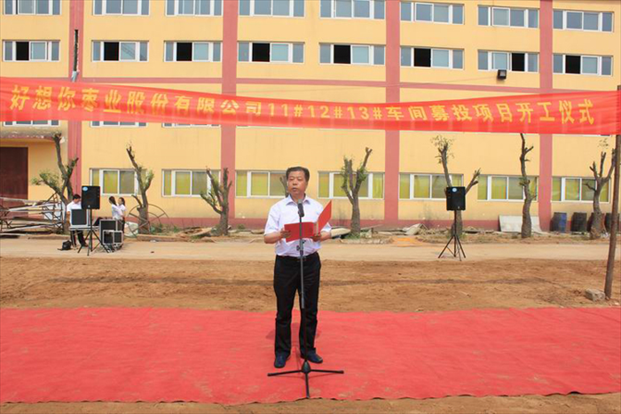 奠基儀式上,石聚彬董事長發表了重要講話。他指出,隨著公司的上市和生產規模的不斷擴大,生產車間和現代化管理設施也必將得到相應的提升。此次車間建設,是公司上市后的募投項目之一,也是公司擴大紅棗加工規模,提高產品市場占有率,進一步加大紅棗加工技術的科研力度,促進高新技術人才引進,增強企業競爭力的需要。